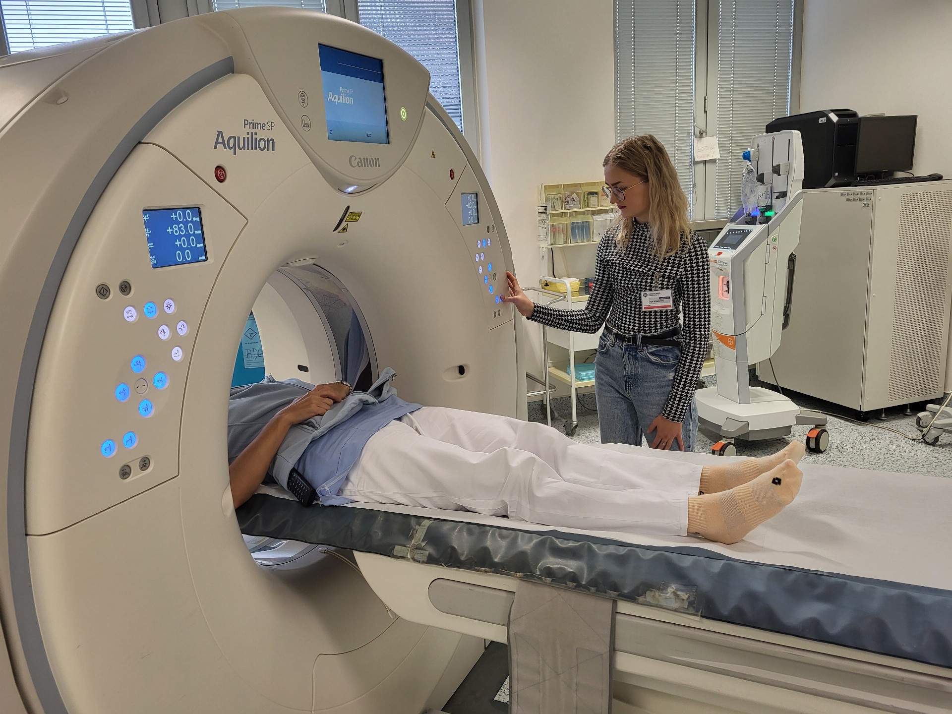 Studentky ráno přivítala náměstkyně ošetřovatelské péče a představila v krátké prezentaci Litomyšl a Litomyšlskou nemocnici. Následně se studentky podle svého zájmu vydaly na vybraná pracoviště. Konkrétně se pak seznámily například s péčí o pacienty s cukrovkou a novým způsobem odběrů glykemie síťovými glukometry, se sledováním srdečního rytmu pomocí telemetrie, s přípravou transfuze k podání, s péčí na stacionáři interní příjmové ambulance, s péčí o ventilované pacienty a jejich dýchací cesty a s monitoringem životních funkcí. Jedna studentka byla přítomna u výkonu punkční dilatační tracheostomie a měla možnost vidět prostřednictvím videolaryngoskopu, jak vypadá vstup do hrtanu a hlasivkové vazy. Na sále byla další studentka přítomna operačnímu programu přímo na sále. Na úseku anestezie mohla sledovat provedení periferní blokády (typ anestezie) pod ultrazvukovou kontrolou a prohlédnout si veškeré přístrojové vybavení i péči poskytovanou na dospávacím pokoji. Na iktové jednotce jsme simulovali péči o pacienta s iktem přes vyšetření na CT s prohlédnutím obrazové dokumentace, až po podání trombolýzy. Na rehabilitačním oddělení si studentky vyzkoušely robotické přístroje ARMEO a chodník Zebris a v laboratořích měly možnost vidět „životní cyklus“ odběru krve a lépe tak pochopit, jak významná je laboratorní práce pro správnou diagnózu. K vidění bylo i hematologicko-transfuzní oddělení, kde se studentka se zájmem o tento obor seznámila s cestou dárce „krve a plazmy“ a dozvěděla se vše podstatné o výrobě a skladování transfuzních přípravků. Navíc si i mohla nechat vyšetřit krevní skupinu. Na pracovišti infekční diagnostiky byla k vidění kultivace vybraných bakteriálních kmenů a stanovení antibiotické citlivosti diskovou difuzní metodou. Na „chirurgickém okruhu“ pak zaujal obor ortopedie, včetně rehabilitační péče a používání motodlahy po operaci kyčelního kloubu. Na RTG snímkovnách byl pro studentky připraven tzv. stitching, což je vyšetření, při kterém se snímkuje celá dolní končetina nebo celá páteř. U tohoto vyšetření se ze tří expozic digitálně vše složí v jeden komplexní snímek.