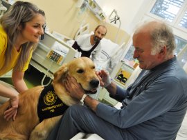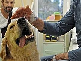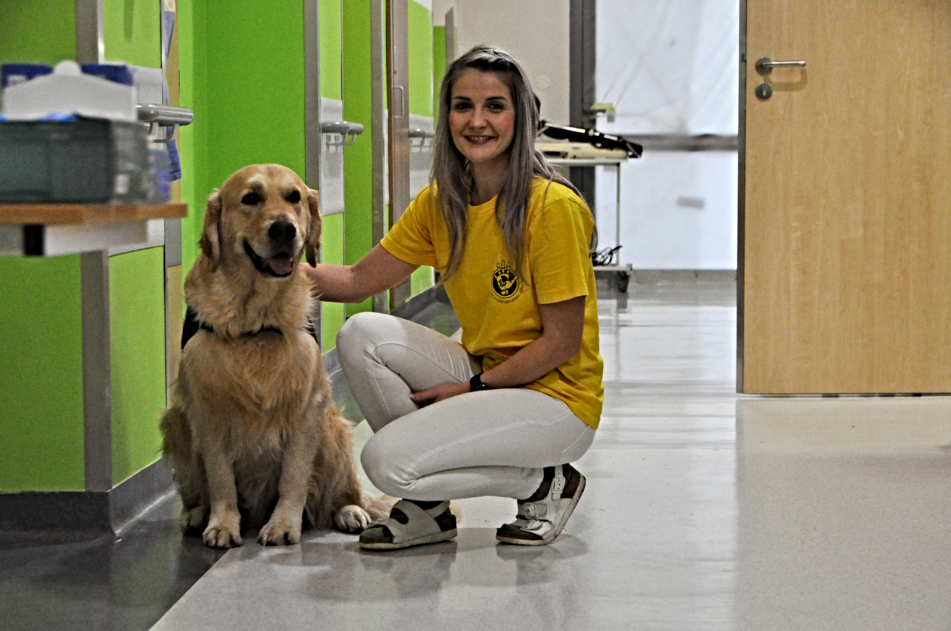 Zlatý retrívr je klidný pes, ví, jak se má chovat, a je empatický, takže vnímá, jak se lidé cítí. Andrea Kobzová zdůrazňuje, že to je základ. Umět se propojit s pacienty. „Já pracuju už pět let na oddělení ARO jako zdravotní sestra a práce s lidmi mě baví. A mám pocit, že canisterapie i práce sestry se tak nějak prolíná.“