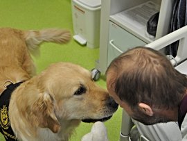 Bailey, jak se zlatý retrívr jmenuje, je totiž klidný, rychle se učí a má rád lidi. Andrea Kobzová se proto začala o výcvik terapeutických psů zajímat a nakonec se rozhodla, že do toho půjde: „Canisterapii se věnuji aktivně přes rok, ale předtím jsme ještě rok jezdili na semináře, výcviky, dělali jsme zkoušky, a pak jsme teprve začali aktivně pracovat.“