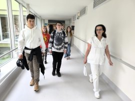 Žáci 9. třídy si nejdříve prošli celou cestu pacienta, kterého přiveze zdravotnická záchranná služba do nemocnice s podezřením na cévní mozkovou příhodu. Jejich trasa začínala od vstupních dveří monobloku na radiodiagnostické oddělení, konkrétně do CT vyšetřovny. Právě výpočetní tomografie (CT) totiž dovede s velmi vysokou mírou jistoty prokázat či vyvrátit přítomnost krvácení do mozku. V doprovodu staniční sestry iktové jednotky Stanislavy Vavruškové, která žáky provázela celým programem, žáci pokračovali na neurologickou JIP, kde se dozvěděli, jak probíhá péče o pacienty s iktem – tedy po cévní mozkové příhodě. Právě litomyšlská neurologie je totiž jedním ze 45 iktových center v ČR, kam jsou soustřeďováni pacienti po cévní mozkové příhodě. V loňském roce zde podali těmto pacientům celkem 108 intravenózních trombolýz. „Čím dříve se léčba zahájí, tím vyšší je její úspěšnost. Ať už z hlediska přežití pacienta, nebo následků mozkové příhody,“ vysvětlila dětem staniční sestra neurologické JIP Stanislava Vavrušková.