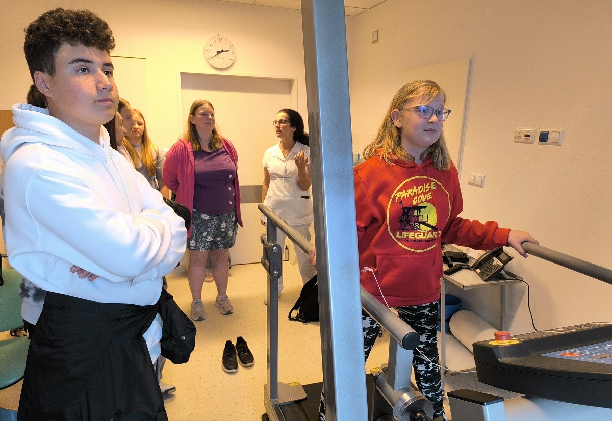 Po zaléčení na neurologii začíná části pacientů jejich pobyt na litomyšlském rehabilitačním oddělení. I to žáci navštívili a zjistili, jak fyzioterapeuti s pacienty pracují a jaké přístroje jsou zde pro rehabilitaci pacientů s pohybovými problémy k dispozici.
